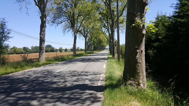 Ausser in einem Fall, waren die Strassen alle so angelegt, dass sie mehr oder weniger schnurgerade über die Hügel führen. Meist sieht man schon von weitem, wie sich das graue Band der Strasse ein paar Kilometer weiter vorne am nächsten Hügel in die Höhe zieht. Zudem scheine ich hier streckenweise auf einer wichtigen Verbindung quer durch Frankreich zu fahren. Ungewohnt viele Lastwagen waren jedenfalls unterwegs.