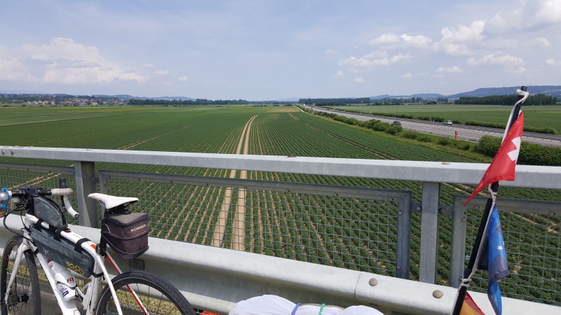 Später ging es dann eine Weile entlang kleiner Bächlein hinunter nach Payerne und damit auch zwischen den Murten- und den Neuenburgersee. Mein Weg führte über die Autobahnbrücke. Plötzlich hatte ich das Gefühl, als ob sich ein Kreis schliessen würde.