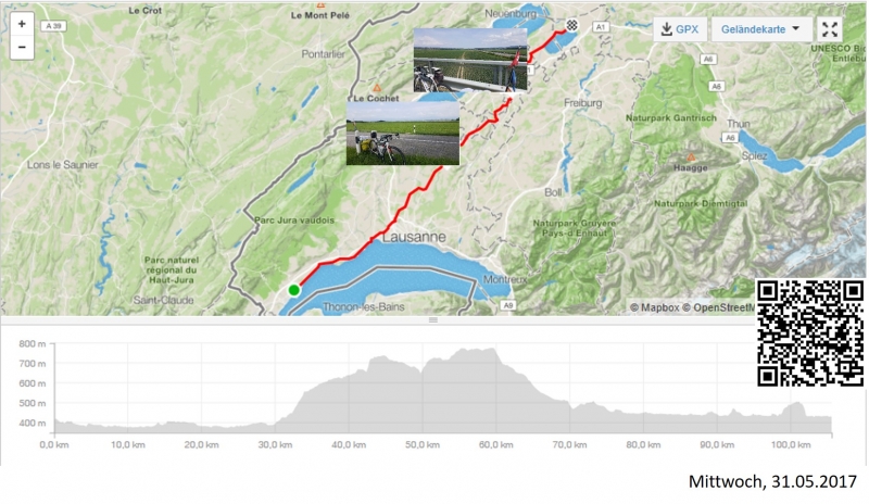 Auf der Ebene, zwischen dem Jura und dem Genfersee angekommen, gab es dennoch nicht viel zu sehen. Der Jura war verhangen von Wolken und Nebelschwaden, die Sicht nicht besonders gut.
