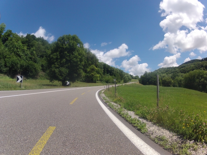Wider Erwarten, hatte es dort kaum Verkehr. Ich fand meinen Rhythmus auch am Berg nicht. Die Beine begannen sehr rasch Zeichen der Übersäuerung zu zeigen. Aus irgendwelchen Gründen wehte auch der Wind immer gegen mich. Schon unten, der Aare entlang. Doch die Passhöhe kam näher und es ging auf der anderen Seite recht zügig ins Fricktal hinunter.