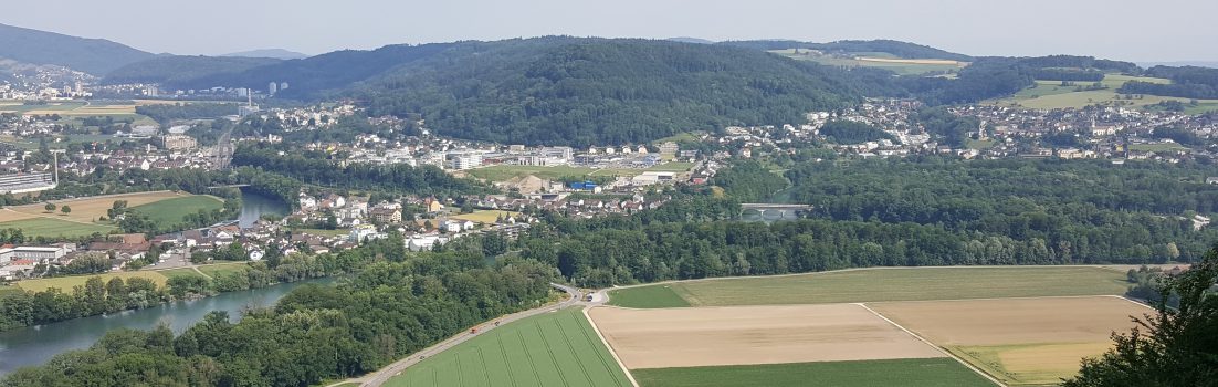 Von dieser Stelle hat man nochmals einen schönen Ausblick hinunter auf die Altstadt von Brugg. Dahinter wieder Windisch, der Blick weiter ins Reusstal hinauf.