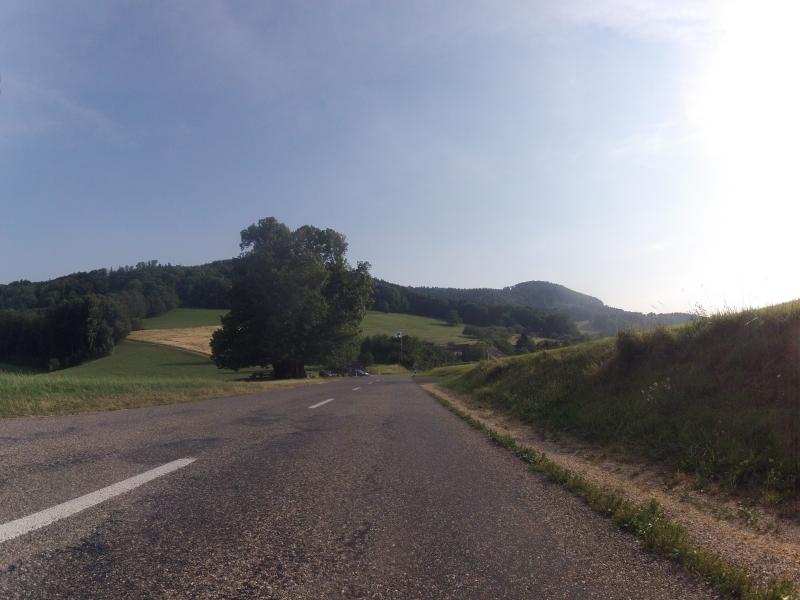 Danach nach Mönthal hinunter und im Schatten der Ampferenhöhe wieder hinauf. Jedoch fehlte mir die Lust nach dem Doppelbuckel der Ampferen später auf der asphaltierten Passstrasse auf den Bözberg hinauf zu kurbeln. Deshalb nahm ich kurzerhand den Feldweg zur Sennhütten hinauf. Aus früheren Fahrten (Monate / Jahre seither?) hatte ich dieses Strässchen in eher schlechter Erinnerung. Doch heute war ich angenehm überrascht.