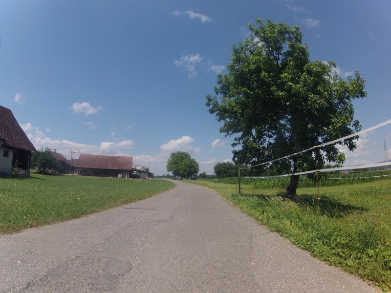 Zum Teil kann ich jetzt auch von einem Rückenwind profitieren. Ich komme recht zügig in die Gegend von Bremgarten. Muss dort nochmals unter einer schwarzen Wolkendecke hindurchfahren. Es fallen sogar ein paar einzelne Tropfen. Doch spätestens ab Niederwil fahre ich wieder auf dem Radweg und unter einer strahlenden Sonne bis nach Hause.