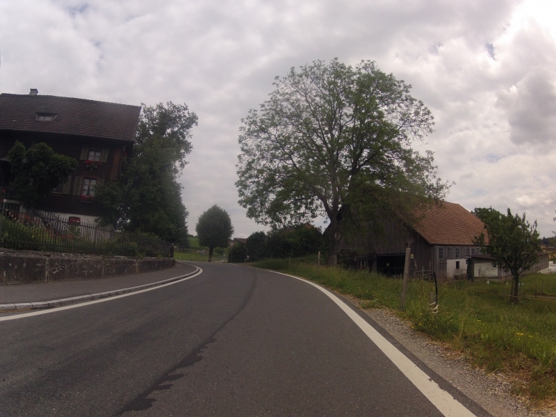 … nur um auf der anderen Seite wieder sehr zügig hinunter fahren zu können. Einzelne Streckenabschnitte kamen mir allerdings bekannt vor, von Fahrten aus der Gegenrichtung. Ab Eschenbach fahre ich eine Weile parallel zu den Alpen. Doch heute gibt es ausser einem Blick auf die etwas vorgelagerte Rigi kaum etwas zu sehen. Die Wolken hängen immer noch zu tief.