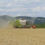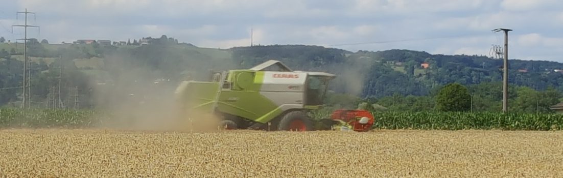 Auch hier war schon vieles abgemäht. Auf den Feldwegen herrschte ein reger Betrieb von Traktoren mit Anhängern, mit und ohne Strohballen auf der Ladefläche.