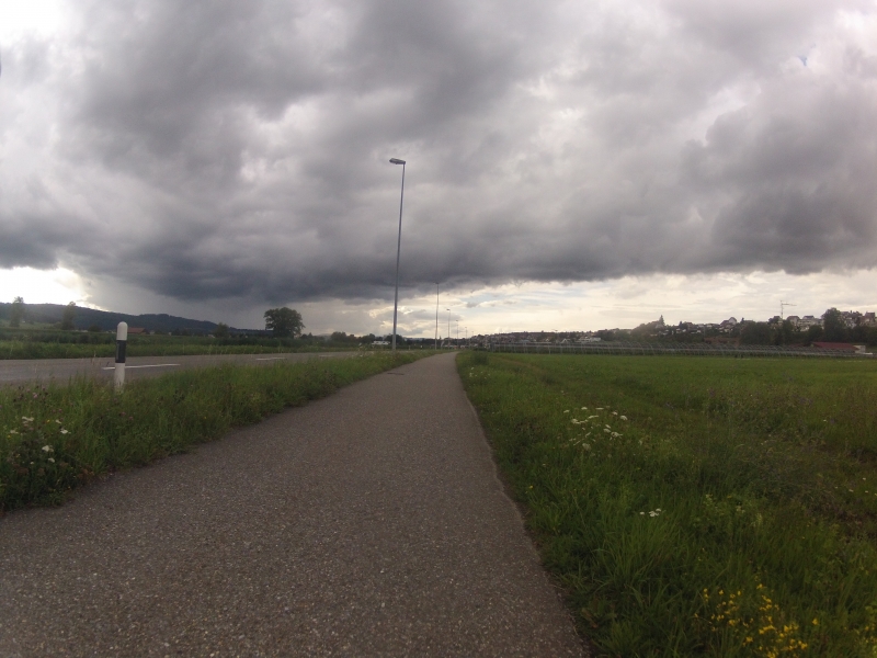 Ich kam in die Ebene hinunter und rollte gerade in Richtung Wohlen einen ersten Teil des Bünztales hinunter. Lange glaubte ich, dass es mir gelingen könnte, vor der heranziehenden Wolke durchzukommen.