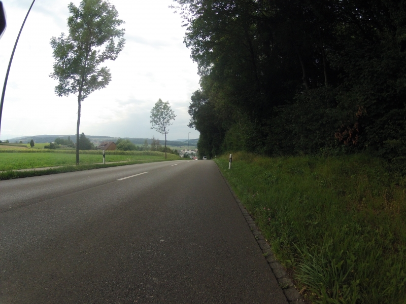 Bei der Abfahrt zu Hause fielen ein paar Tropfen, jedoch ohne dass ich es für notwendig hielt, einen Regenschutz über zu ziehen. Währe in dieser schwülen Wärme sowieso viel zu warm und zu schweisstreibend gewesen. In der Zwischenzeit hellte sich das Wetter wieder etwas auf, die Sonnenstrahlen fanden den Weg wieder bis auf die Strasse herunter.