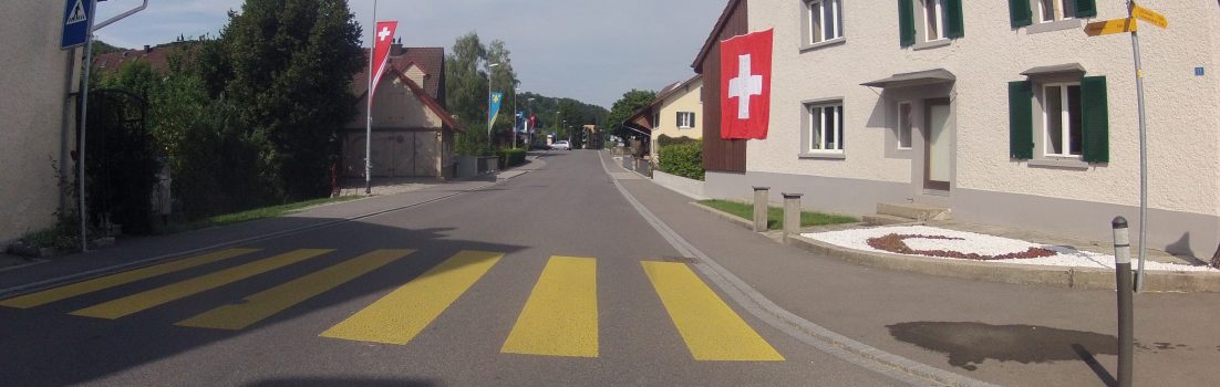 Es ist immer wieder besonders schön, am Tag vor dem Bundesfeiertag durch die Dörfer zu fahren. Alle haben sich herausgeputzt, und vor allem hängt der ganze Fahnenschmuck draussen an den Kandelabern. Auch einzelne Häuser der Gemeinde oder gar Kirchtürme erhalten für diesen Tag eine Fahne.