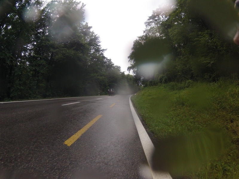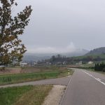 Zu spät setzte ich mich heute auf das Rennrad. Schon den ganzen Tag sah es nach Regen aus, doch der kam erst, als ich schon weg war. Hinauf aufs Villigerfeld, da fielen die ersten Tropfen. Noch am günstigsten sahen die Wolken in Richtung Bürensteig aus. Aber das nützte nichts mehr.