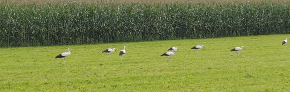 Meine Fahrt ging weiter südwärts, das Reusstal hinauf. Oftmals auf Radwegen, oder asphaltierten Feldwegen. Teils der Reuss entlang, die hier sehr viele Kurven macht und so eine Art Sumpflandschaft durchquert. Überall stehen auch hier noch Maisfelder herum, die meinen Kopf bei weitem überragen. So fahre ich ziemlich überraschend an eine ganze Schar von Störchen heran. Schnell ein paar Fotos schiessen, bevor sie wegfliegt. Doch irgendwie fühlen die sich gar nicht gestört durch meine Anwesenheit.
