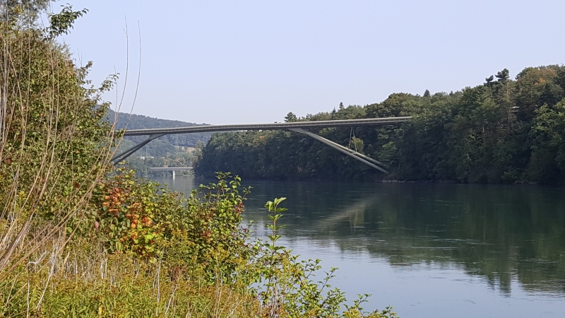 In Stilli überquere ich die Aare, fahre danach hinüber ins Surbtal und weiter über den Zurzacherberg, hinunter an den Rhein. Ab jetzt verbringe ich viele Kilometer entlang dem Rhein. Bis etwa nach Eglisau kannte ich die Strecke von früheren Fahrten ungefähr, danach war das Meiste Neuland. Ab und zu geht es heute allerdings über Schottersträsschen, weil ich diese früher mit dem Rennrad meist umfahren habe, oder durch wunderbar kühlen Wald.