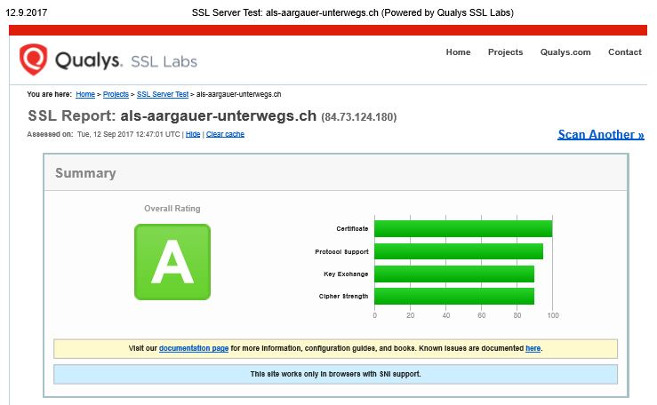 Ein weiterer Test bei SSLLAB vergibt jetzt meinem Weblog immerhin ein Rating von “A”. Besser geht fast gar nicht.