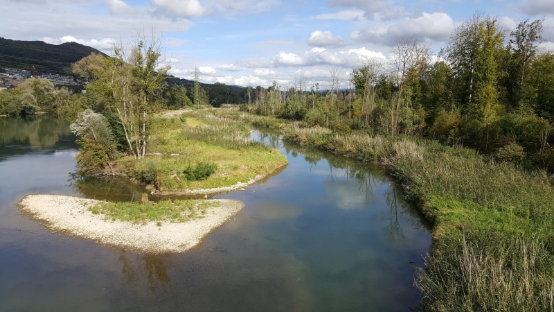 Danach fuhr ich auf der welligen Strecke bis nach Biberstein hinunter, folgte dort eine Weile lang der Aare und einer der Radrouten. Kurz vor Aarau überquerte ich die Aare auf einer neu erstellten Brücke, der Umfahrungsstrasse von Aarau zur Staffelegg.