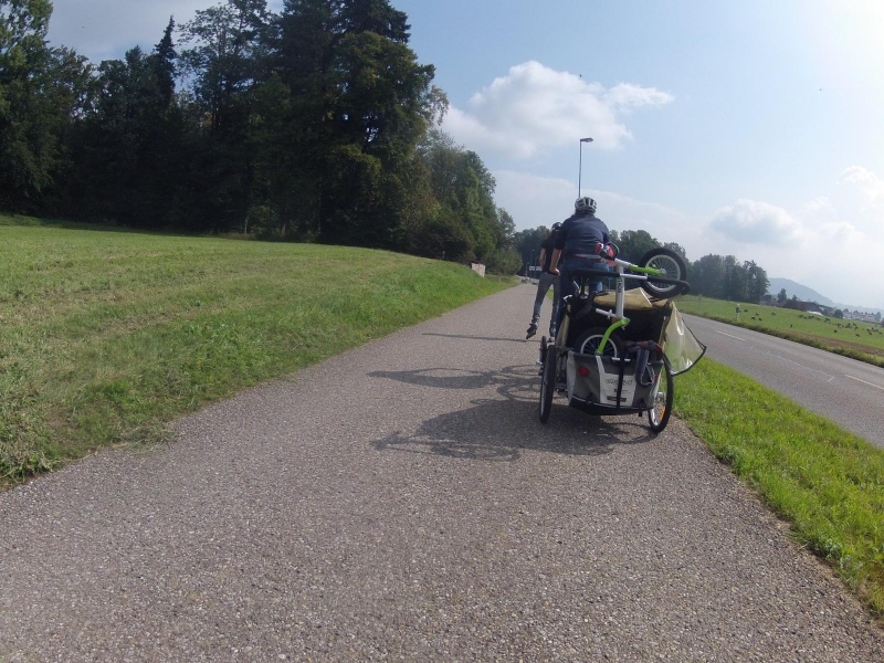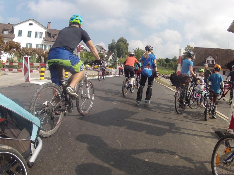 Im zweiten Teil der Strecke, nach Rapperswil, entlang dem Oberen Zürichsee, ging es dann deutlich gemütlicher zu und her. Die Festivitäten beschränkten sich eher auf Wegweiser zu Restaurants, etwas neben der Strecke gelegen. Gerade für Inlineskater war es aber der anspruchsvollere Teil, ging es doch ein paar Mal recht wellig über das Gelände.