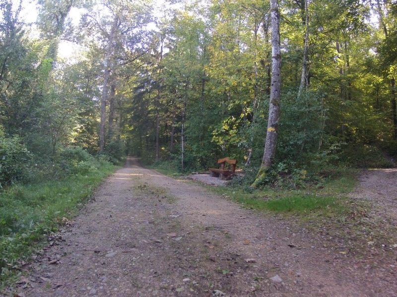 Nach den verpassten Versuchen zum Auffinden der Verstecke, fuhr ich bei Mülligen an die Reuss und auf der anderen Seite nach Birmenstorf gleich wieder in die Höhe. Weit über das Dorf hinaus, an Feldern mit verdorrten Sonnenblumen vorbei, an einzelnen letzten Häusern, bis hinauf zum Waldrand. Da sollte sich noch so eine Büchse versteckt halten.