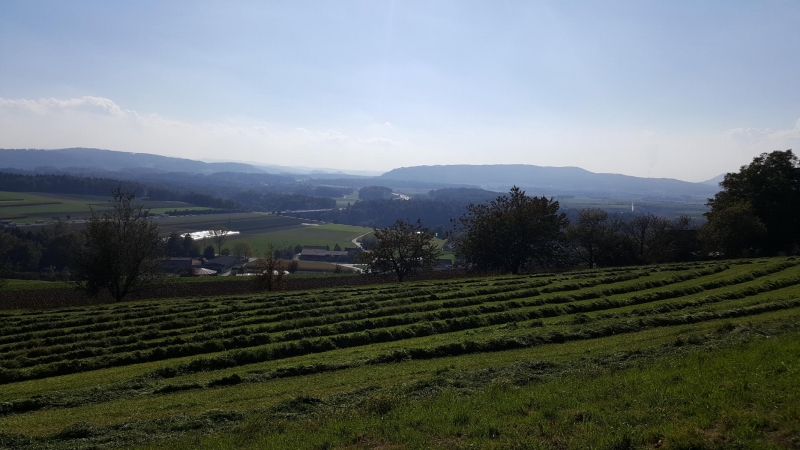 Ich habe sie dann tatsächlich auch gefunden. Doch bevor ich wieder in die Tiefe fuhr, genoss ich noch den Ausblick. Vorne unten, etwa in der Bildmitte, von links nach rechts, das Bett der Reuss. Ziemlich genau in der Bildmitte der silbern glänzende Fleck der A1, der sich weiter hinten im Bild in der Form eines “S” fortsetzt. Die A1 kommt etwa in der Bildmitte am linken Bildrand ins Bild. Vor dem Hügelzug in der rechten Bildhälfte befindet sich das Birrfeld mit dem Flugplatz für Kleinflugzeuge.