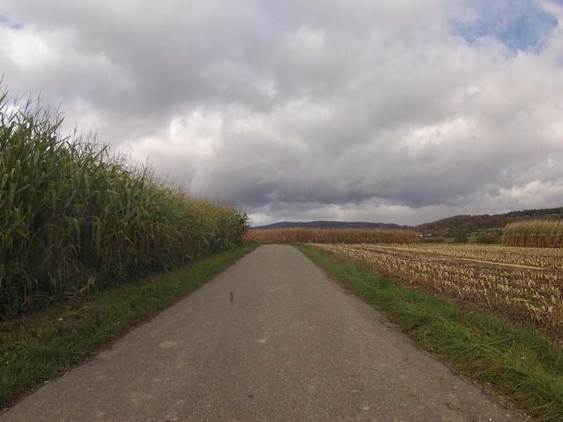 In der Nähe von Unterlunkhofen überquerte ich das Reusstal, hinüber in Richtung Bünztal. Gerade zur richtigen Zeit. Ein paar Regentropfen vom nahen Schauer trafen mich dennoch. Mehr aber nicht. Bald war die Anhöhe zwischen Reusstal und Bünztal erreicht.