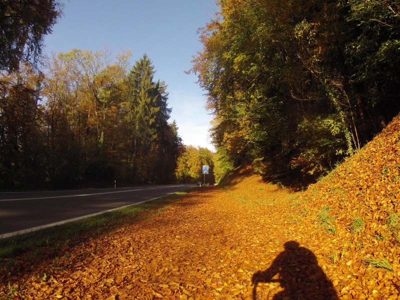 Gut, wusste ich, dass hier unter dem ganzen Laub ein asphaltierter Radweg versteckt liegt.