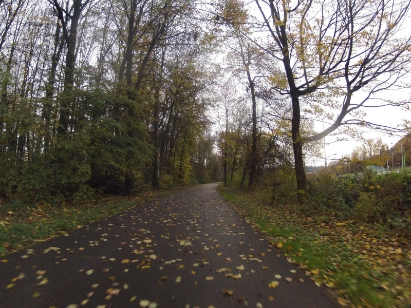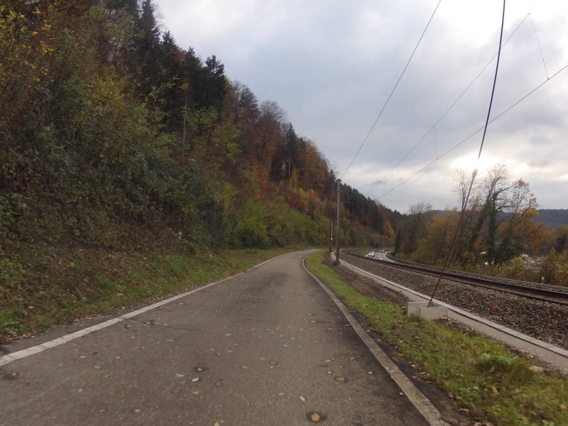 Die Bise half ein bisschen nach. Ich kam recht flott voran. Die Strecke, ab Etzgen, dann wenn sie auf einem separaten Weg neben der Hauptstrasse geführt ist, mag ich besonders. Einen kurzen Unterbruch gibt es in Laufenburg, aber danach ist der Radweg wieder ein separates Strässchen, bis fast nach Eiken, im Fricktal.