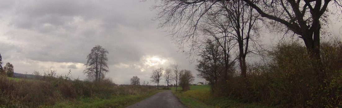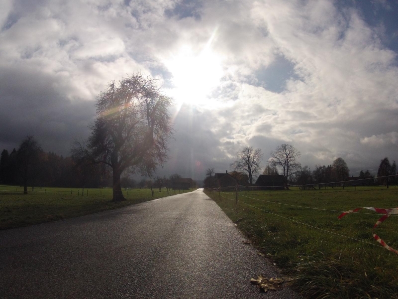 Es regnete nicht immer. Manchmal schien auch die Sonne zwischen den dicken Wolken herunter. Ich glaube, ich bin einem Regenschauer hinterher gefahren. Die Strassen waren immer nass. Die Sicht nach vorne fast immer gleich schlecht. Ab und zu sah man an den Alpenrand, die verschneite Rigi, mit einer dicken Nebelkappe. Für ein Foto hat es nicht gereicht. Gibt ja nichts her, so eine Nebelwand.