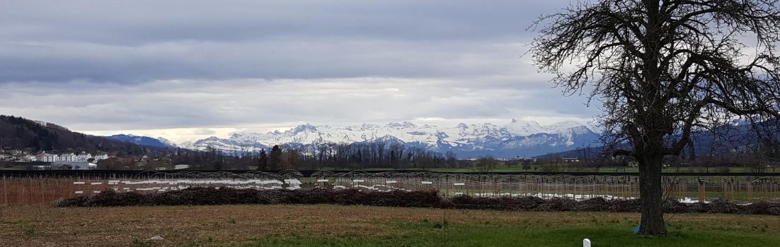 Nach dem Bünztal fuhr ich dann gleich nach Villmergen auf dem ehemaligen Bahntrasse nach Sarmenstorf hinauf und ein Stück weiter ins Seetal. Schon vorher im Bünztal hatte ich eine gute Sicht zum Alpenkamm, doch hier mitten im Seetal, zwischen dem Hallwiler- und dem Baldeggersee, da musste ich einfach ein Foto schiessen.