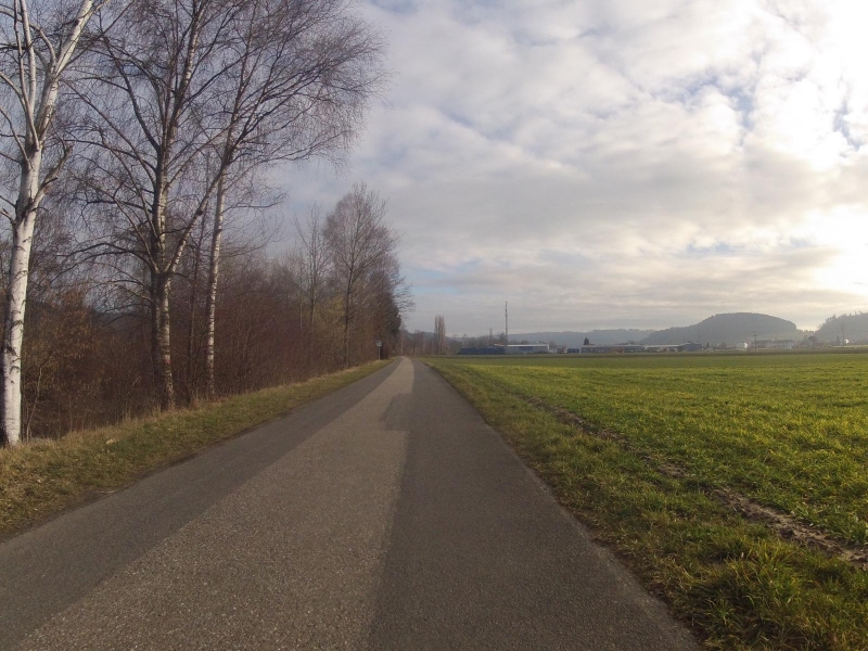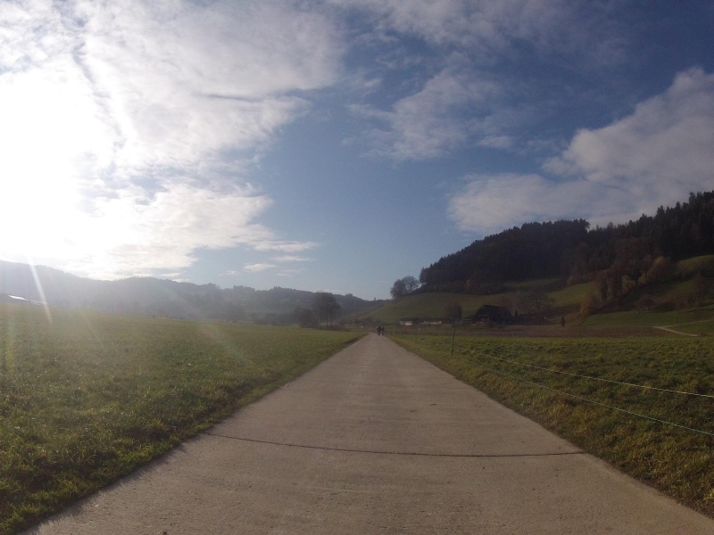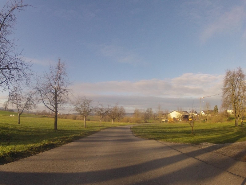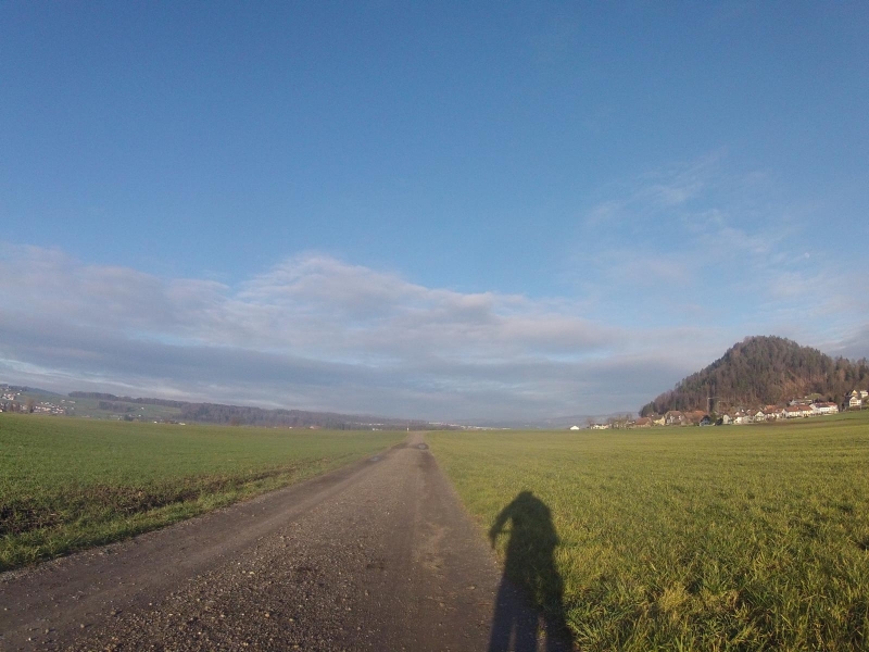 Als die Sonne um die Mittagszeit die Oberhand über den Nebel gewann, dauerte es nicht mehr lange, bis mein Rad auf der Strasse stand. Ich war früh dran. Zudem war es schon fast wieder frühlingshaft warm. Das müsste reichen für eine längere Fahrt. Für einen Granfondo, den ich mir vor längerer Zeit schon auf das GPS geladen hatte.
