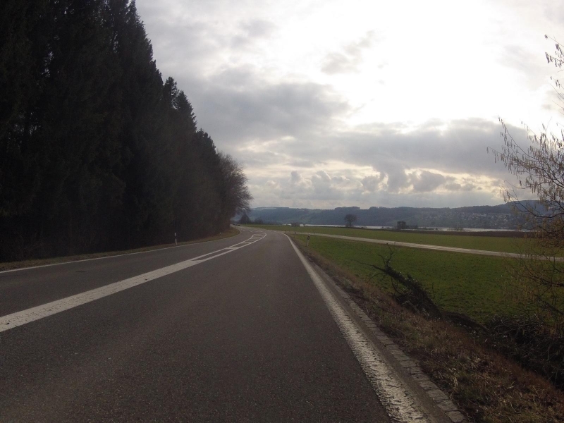 Hatte ich bis hierher recht viel Sonne und kaum Wolken, so verdüsterte sich der Himmel während der Fahrt das Seetal hinauf laufend. Vorerst waren sogar die Alpen von einem Wolkenvorhang verdeckt. Kurz vor meinem Wendepunkt in Hochdorf, am obersten Ende des Baldeggersees, fielen sogar einzelne Graupelkörnchen aus dem nebelartigen Gewölk.