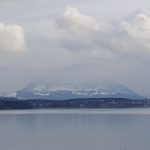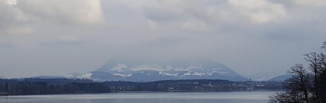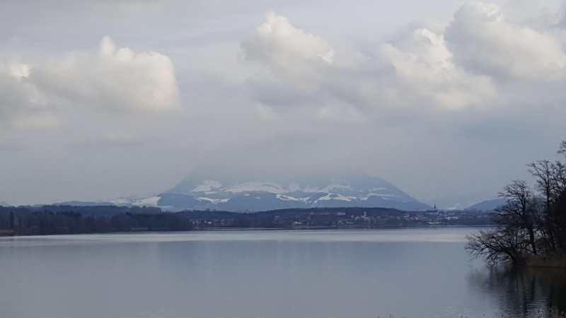 Für die Heimfahrt fuhr ich auf der anderen Seite der beiden Seen wieder zurück. Kurz vor dem Ende des Baldeggersees wagte ich doch nochmals einen Blick zurück. Zu meiner Überraschung gaben nun die Wolken wenigstens teilweise die Sicht auf die Berge frei.