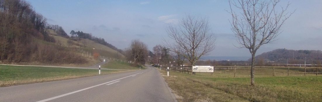 In der Tat. Trotz der Sonne, fühlte sich der Wind sehr kalt an. Deshalb entschloss ich mich in Umiken diesmal die steilere und ungemütlichere Auffahrt auf den Bözberg nehmen. Es sollte etwas mehr Wärme geben und die Strecke befindet sich wenigstens teilweise etwas vom Wind abgewendet.