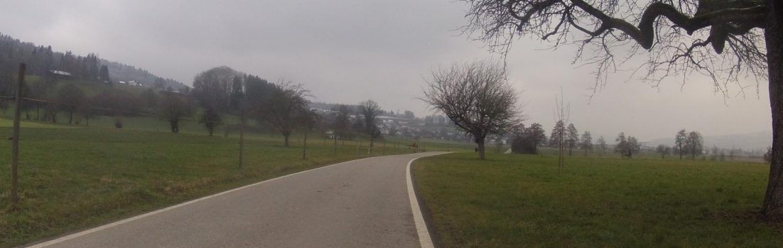 Wohl war der etwas hellere Fleck am Himmel immer noch da, doch auch über diesem Gebiet blieb es weiterhin grau. Die Bise hatte ich jetzt im Rücken, wenigstens diesen kleinen Vorteil hatte ich aus dem Richtungswechsel. Dennoch, bis Dintikon hatte ich nicht so richtig genügend Wärme in die Kleider hinein bekommen, so dass ich den Aufstieg nach Ammerswil unter die Räder legte.