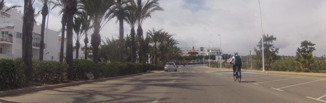 Über und entlang der letzten Ausläufer der nahen Gebirgskette, dann aber vor allem durch das Gebiet der Sandhöhlen bei Cuevas del Almanzora und danach wieder zurück zum Meer. Etwas gedeckt durch die Hügel im Gegenwind und später mit dem nachlassenden Rückenwind wieder ins Hotel zurück.