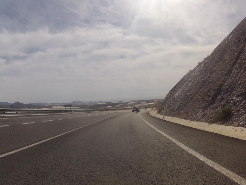 … voller Gemüse und Salat, oder Oliven, Orangen- oder Mandelbäume wechseln sich ab mit kargen Landschaften. Wüstenähnlich, ein paar zerbröckelnde Hausmauern, Gruppen von Palmen. Manchmal aber auch die wenig ansehnlichen Ebenen der Triebhäuser.