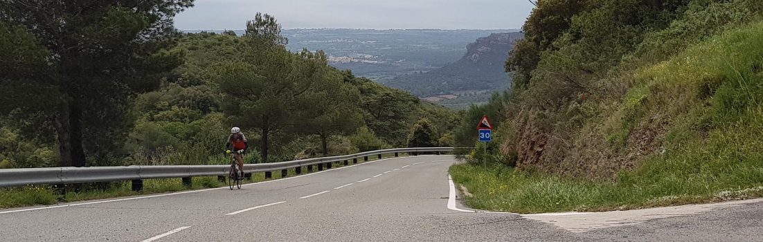 Danach wieder hinunter. Anfänglich etwas holprig und steil, später konnten wir es richtig sausen lassen. Wir kamen nach Mont-roig del Camp hinunter. Ein Teil der Gruppe verabschiedete sich von uns. Wir standen jetzt eigentlich am Fusse der Berge. Die Idee, noch auf den Aussichtspunkt hinauf zu fahren, begeisterte den Rest der Gruppe, trotz der Aussicht auf schlechte und steile Strassen.
