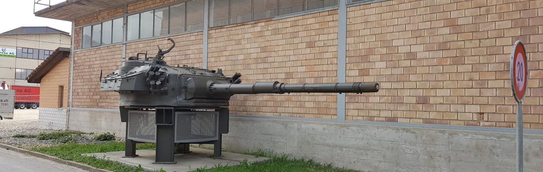 Da war auch noch eine Baustelle, ein paar Fahrverbote. Ich irrte etwas in der Gegend herum, ein halb zugedecktes militärisches Geschütz stand unter einem Vordach. Plötzlich entdeckte ich den Geschützturm eines Panzers.