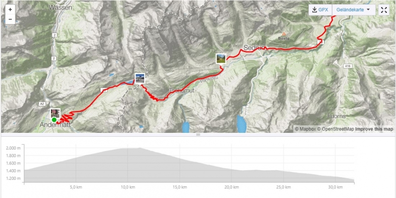 Mein Bett steht heute Abend in Disentis. Dies ist auf dem obigen Bild nicht mehr ersichtlich. Disentis befindet sich erst in der nächsten Geländekammer.