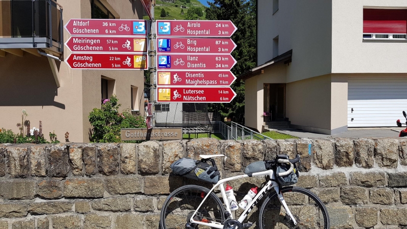 In Andermatt kommen einige Radrouten zusammen oder starten von hier. So auch meine Rheinroute, die Radroute Nummer 2. Sie wird für die nächsten paar Hundert Kilometer mein Wegweiser sein.
