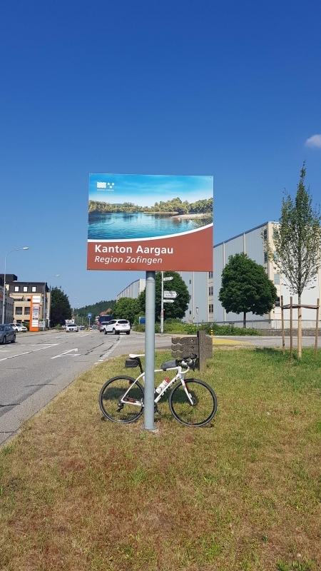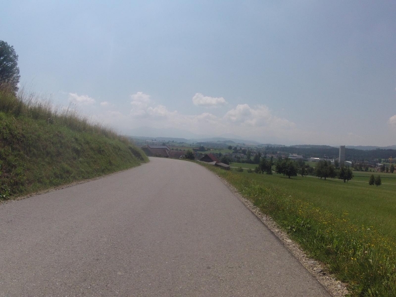 Nach dem Essen geht es weiterhin leicht abwärts, mit kleinen Zwischensteigungen. Oft entlang der Radroute 34 (Alter Bernerweg), die ich ja mittlerweile schon recht gut kenne. Wenn es mir gerade so passt fahre ich auf diesem Radweg, sonst auf der Hauptstrasse. Einfach dort, wo mir die Routenwahl kürzer erscheint.