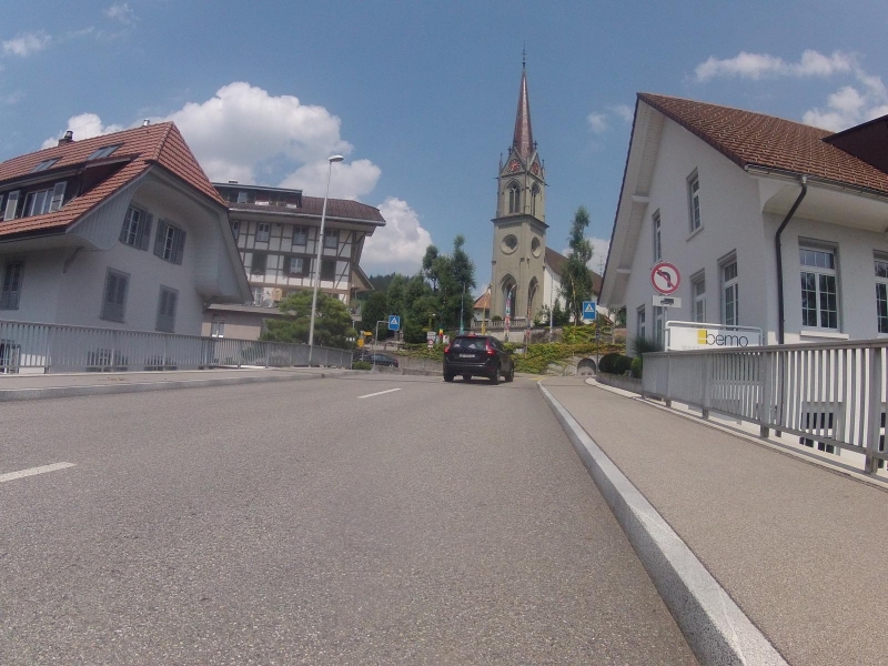 Es hat heute nicht sonderlich viel Verkehr auf der Strasse, so kann ich den Blick immer wieder über die Landschaft schweifen lassen. Dennoch bin ich überraschend rasch in Escholzmatt angekommen, dem höchsten Punkt meiner heutigen Rundfahrt.