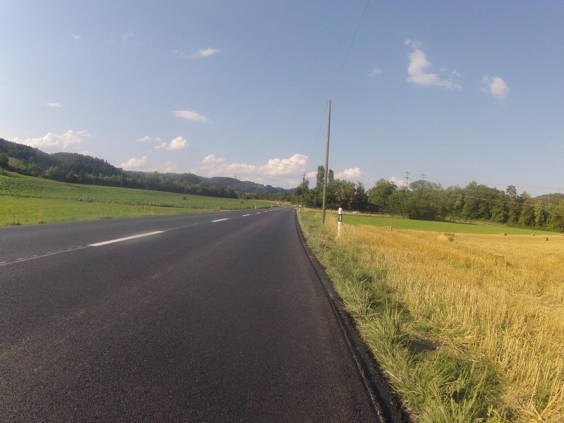 Zum Beispiel über das Schinznacherfeld, wo in den letzten Wochen die Strasse ausgebessert und mit einem neuen Teerbelag versehen wurde. Bald folgt in Umiken nochmals die Überquerung der Aare und ein paar letzte Kurven durch die Quartiere und ich bin schon wieder zu Hause.