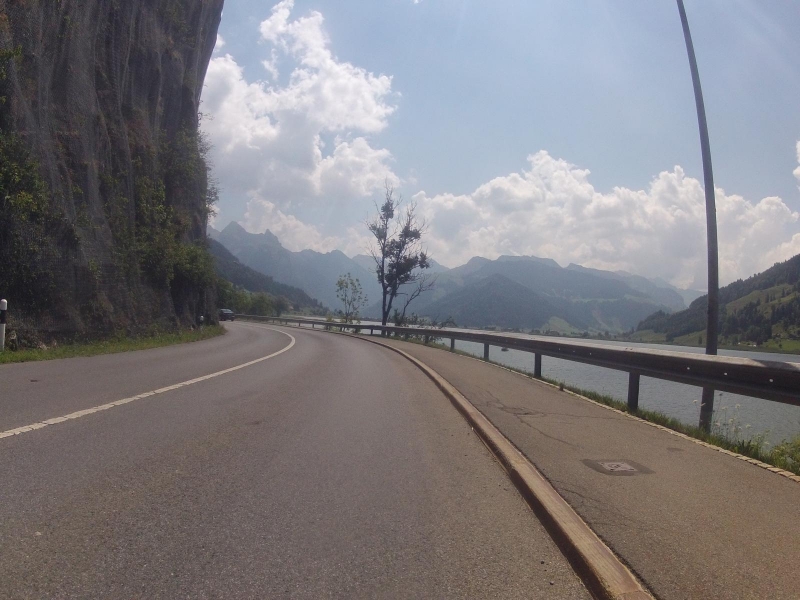 Ich verpasse es, auf den nächsten Kilometern den Blick hinunter zum Zürichsee zu verpixeln. Ab Schindellegi wird es nochmals steil bis nach Biberbrugg hinauf. Radwege und Radstreifen trennen das Fahrrad vom Verkehr. Nach Biberbrugg geht es auf der Umfahrungsstrasse, wiederum der Sihl entlang, hinauf zum Sihlsee. Die Strasse ist fast eben, überquert kurz vor Euthal den See und folgt diesem nachher bis zum Anstieg nach Unteriberg.
