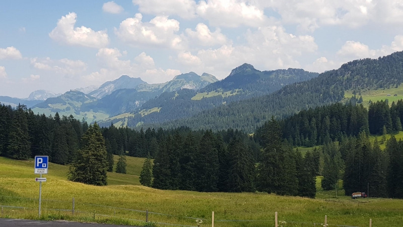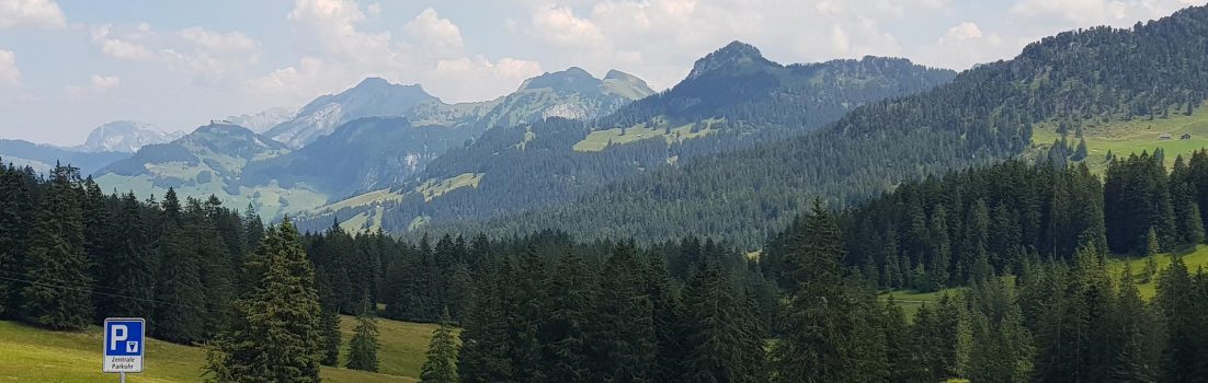 Neben dem obligaten Passfoto auf der Passhöhe geniesse ich natürlich auch noch die Sicht in die Weite, zum Beispiel hinüber in Richtung Hoch Ybrig.