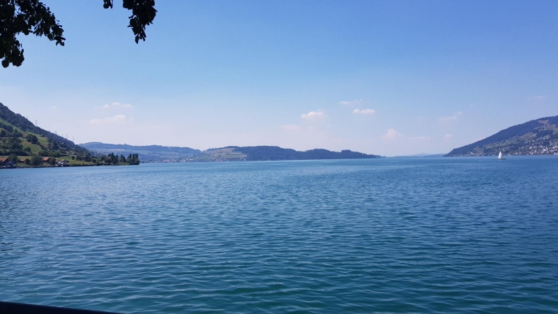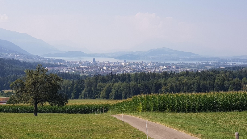 Wenig später zeigt sich in der Ferne der Zugersee.
