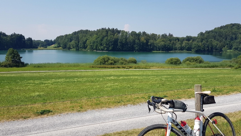 Besonders gefällt mir an dieser Strecke, dass sie über viele Kilometer auf fast verkehrsfreien Strasssen verläuft. Hat sie einmal etwas an Höhe gewonnen, sieht man einerseits ins Zugerland mit dem Zugersee und später auf der anderen Seite ins “Zürcherland” mit dem Zürichsee.