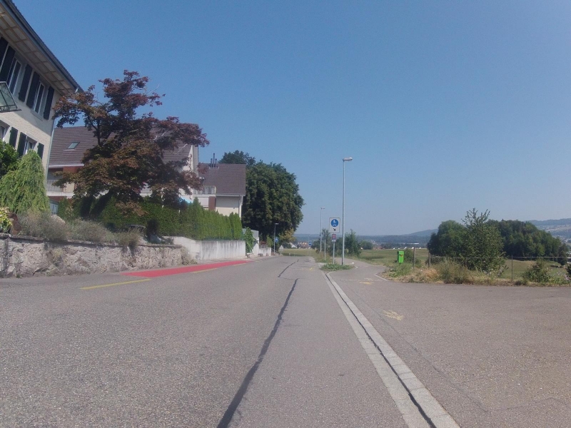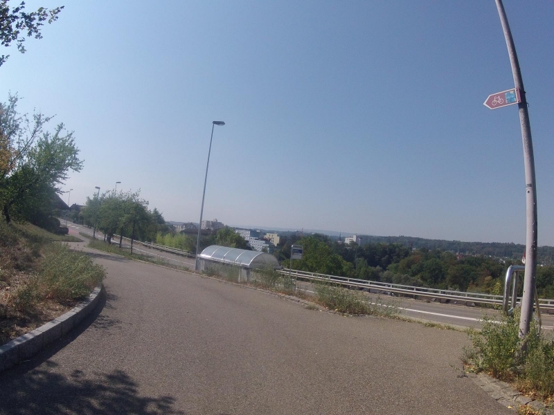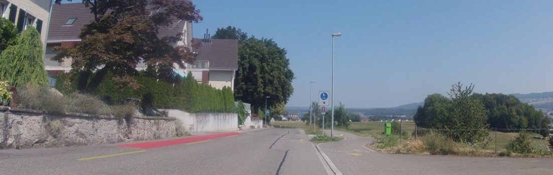 dann hinunter an die Reuss und auf der anderen Seite nach Birmenstorf hinauf. Dann blieb es aber lange recht flach. Zwar an der von der Sonne beschienenen Seite des Hügels, aber immerhin wehte ein schwacher Wind aus wechselnden Richtungen. Nach Eggenwil nochmals ein kleiner Anstieg auf eine Anhöhe, bevor man einen schönen Überblick über das Reusstal und Bremgarten erhält.