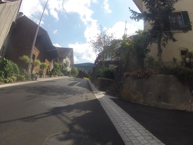 Überraschenderweise liegt diese Strecke fast parallel zur Strecke von der Staffelegg an den Rhein hinunter. Ich verlasse diese Radroute bei Endingen, nehme die etwas weniger stark befahrene Hauptstrasse nach Freienwil statt über Ehrendingen hinüber ins Limmattal. Der vierte rechte Winkel steht. Wobei er schlussendlich eher einer Beule gleicht. Es bleibt immerhin die Genugtuung, dass die Beule, gefahren über den Hertenstein etwas kleiner sein dürfte, als gefahren über das Höhtal.