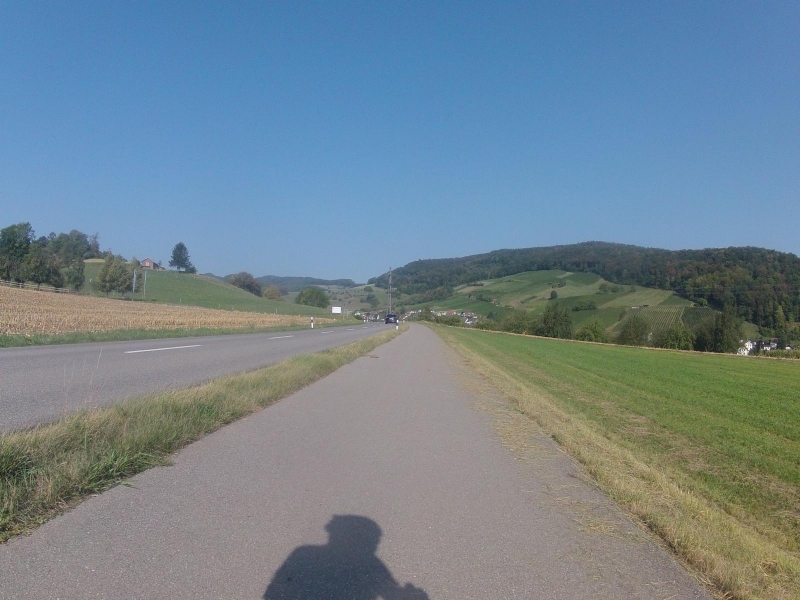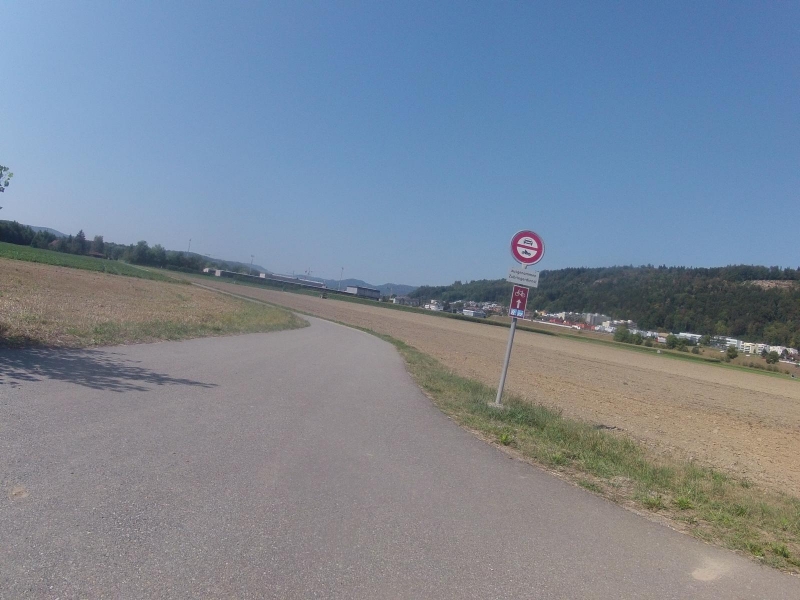 In Oberflachs wende ich abermals und fahre wenig später dem Schinznacherfeld entlang bis nach Umiken. Ein kurzer Anstieg nach Riniken hinauf und die Fahrt geht wieder flach weiter, diesmal entlang dem Villigerfeld.