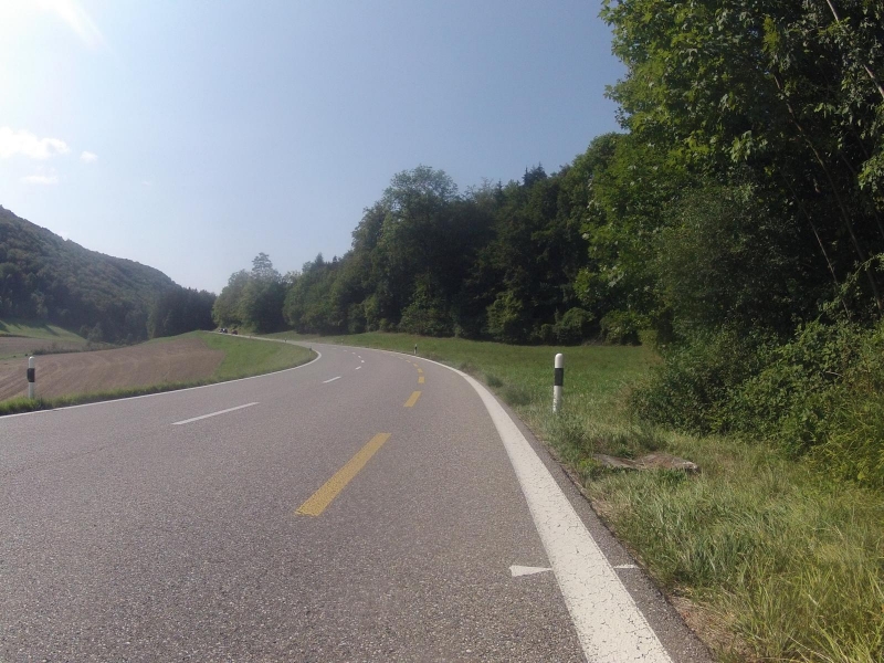 Ich fahre weiterhin im Surbtal aufwärts bis nach Ehrendingen und biege dann rechts weg vor der Lägern über Höhtal hinunter nach Ennetbaden und somit auch ins Limmattal. Die Lägern ist im Bild der längliche Hügel im Hintergrund.