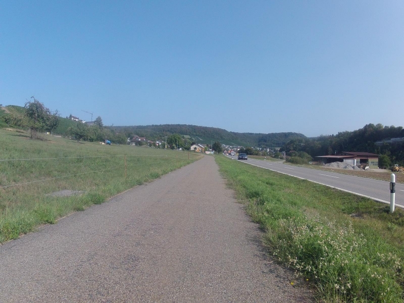 Ennetbaden, Baden und Dättwil sind die nächsten Ortschaften auf meiner Strecke. Einiges sind Radwege, anderes einfach nur Radstreifen durch die Agglomeration Baden hindurch. Nach Fislisbach eine zügige Abfahrt hinunter nach Mellingen und mitten in die Rushhour hinein. Nach wenigen Metern auf der Hauptstrasse kann ich diese aber schon wieder verlassen und befinde mich bald auf dem Radweg hinauf ins Birrfeld.