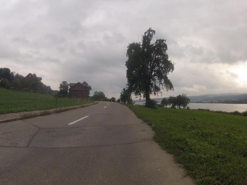 Die Wolkendecke sieht immer wieder anders aus. Manchmal hängt sie angsterregend tief, manchmal etwas höher, man hat das Gefühl, die Sonne könnte den Durchbruch doch noch schaffen, doch ein paar Minuten später sieht dann alles wieder nach Regen aus. Diese Stimmung hält auch bei der Fahrt durch das Seetal, entlang dem Baldegger- und später dem Hallwilersee an.