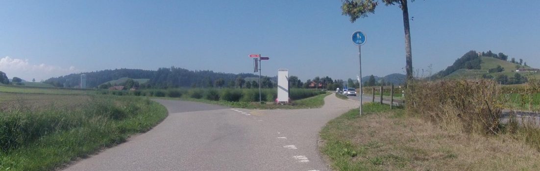 Gut, wenn man sich langsam in der Gegend auskennt. Ich fahre denn auch darauf weiter über Murgenthal nach Rothrist. Dort verlasse ich diese Radroute aber trotzdem wieder und fahre dann ab Olten, im Aaretal, mehr oder weniger in Griffnähe zur Aare bis nach Hause.